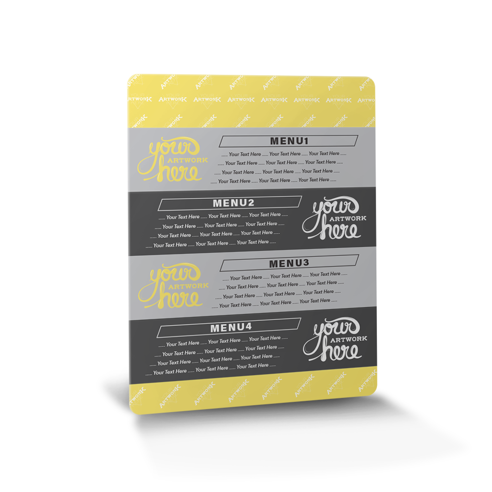 Our Plastic Menus offer restaurants and bars an easy to clean and durable menu option. Food and beverage photography prints beautifully in 4-color process on one or both sides. Choose from two thicknesses of overlaminated plastic and two popular sizes for high-quality custom printed menus that will exceed your expectations. You can rely on us when you need durable menus, or any type of , printed on time for a variety of indoor purposes.